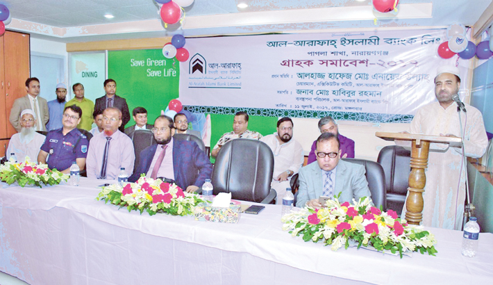 Al-Arafah Islami Bank Managing Director Md Habibur Rahman presides over a meeting titled ‘Meet the Clients’ at its Pagla branch premises in the capital on Tuesday.