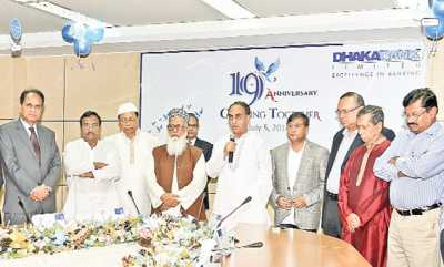 Dhaka Bank Limited, speaks at a ceremony on the occasion of the bank’s 19th anniversary at the bank’s head office at Motijheel in Dhaka on Saturday. Dhaka Bank Limited celebrated its 19th anniversary at the bank’s head office at Motijheel in Dhaka on Saturday.