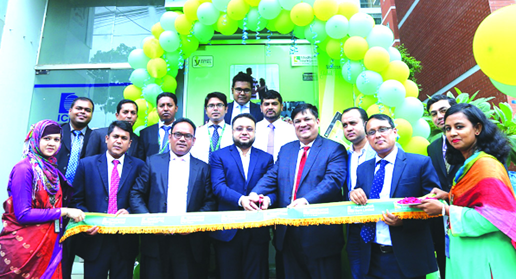Md. Shafiul Azam, Managing Director of Modhumoti Bank Limited inaugurating its ATM Booth at Sheikh Kamal Sharani Branch, Dhanmondi on Thursday. Rafiur Rahman Khan Yusufzai, sponsor shareholder, Md. Shaheen Howlader, Head of SME and Retail Banking Division