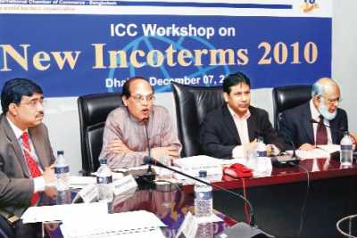 (Bangladesh Bank Governor Dr Atiur Rahman, seen at a workshop titled `ICC Workshop on New Incoterms 2010 & Certified Documentary Credit Specialist (CDCS)’’ organised by the International Chamber of Commerce and Industry (ICC) at the BGMEA office in the city yesterday. BGMEA president Abdus Salam Murshedy, ICC,B President Mahbubur Rahman, chairman of ICCB Commission on Banking Technique and Practice Mamun Rashid also seen. sun photo)
