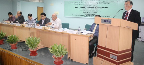 Ishtiaque Ahmed Chowdhury, Managing Director and CEO of Trust Bank Limited, speaks at a seminar on “International Financial Regulations: Necessity and Implications for Banks in Bangladesh” at the BIBM Auditorium in Dhaka recently.