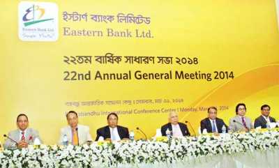 Eastern Bank Limited (EBL) declared 20 percent cash dividend for its shareholders for the year 2013.