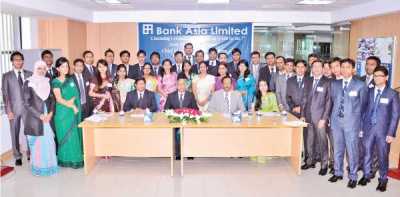 Aminul Islam, Deputy Managing Director of Bank Asia, poses with the participants of a training course