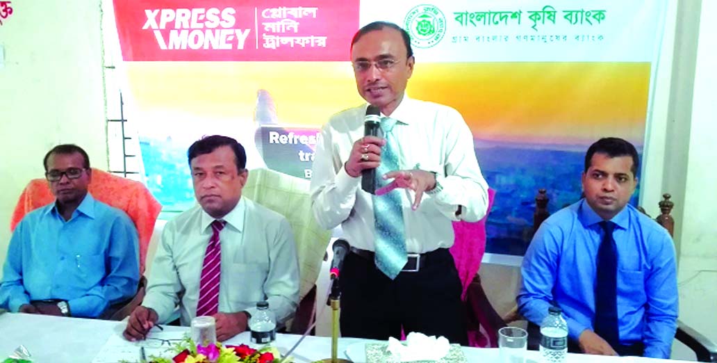 Thakur Das Kundu, GM of Bangladesh Krishi Bank, addressing at a \'Motivational and Refreshers Training Program\' for its officers of Barisal recently. Rohini Kumar Paul, Divisional GM of the bank and Iqbal Hossain, Business Development Executive of Xpress