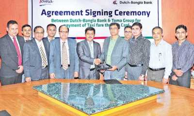 Toma Group recently signed an agreement with Dutch-Bangla Bank Limited for payment of taxi fare through card.