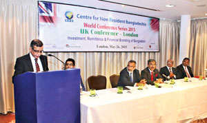 Ishtiaque Ahmed Chowdhury, Managing Director & CEO of Trust Bank Ltd speaking in a conference held in London recently. Centre for NRB organised the conference under World Conference Series 2015. M S Shekil Chowdhury of Centre for NRB chaired the session. Among others Bangladesh Bank General Manager Masud Biswas spoke on the occasion.