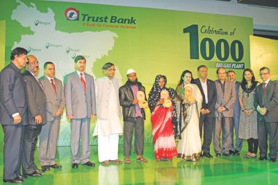 Trust Bank celebrates its financing for 1,000 biogas plants at Radisson Blu Water Garden Hotel in Dhaka yesterday