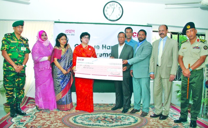 United Commercial Bank Limited (UCB) handed over a donation check of Taka 25,00,000/- (Taka Twenty Five Lac only) to ‘Proyash’, a school for especially abled Children operated by 9th Infantry Division, Savar Cantonment on 2 April 2014, by the authority reported.