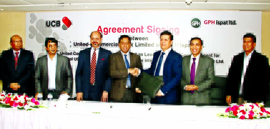 Economic Reporter :United Commercial Bank Limited (UCBL) recently signed an agreement with GPH Ispat Ltd. to act as Lead Arranger & Security Agent to raise USD 154 million (Foreign currency 140 million & local currency 14 million) equivalent to total BDT1232.00 crore for setting up a new integrated steel mill by GPH Ispat Ltd.Total cost of the project is USD 220.06 Million equivalent to BDT 1760.50 crore where UCB as Lead Arranger raise USD 154 million equivalent to total BDT1232.00 crore. Muhammed Ali; Managing Director of United Commercial Bank Limited and Mohammed Jahangir Alam; Chairman, GPH Group & Managing Director, GPH Ispat Ltd. signed the agreement on behalf of respective organizations.Among others Additional Managing Directors of UCB namely M Shahidul Islam, Mirza Mahmud Rafiqur Rahman and AE Abdul Muhaimen were present at the event.Moreover, Chairman of GPH Ispat Ltd Md Alamgir Kabir and Additional Managing Director of GPH Ispat Ltd Mohammed Almas Shimul along with senior officials of both the organizations were present at the event.