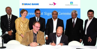 bKash Ltd -- a joint venture company between BRAC Bank, Bangladesh, and Money in Motion LLC, USA -- signed an agreement with ShoreBank International, an international consulting firm, to provide financial services through an extensive network of community-based agents and existing technologies, including mobile phones.