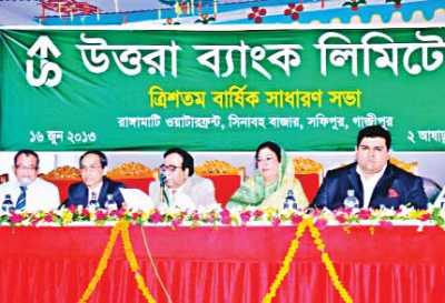 Uttara Bank Limited approved 10 percent stock dividend and 15 percent cash dividend for its shareholders for the year 2012.