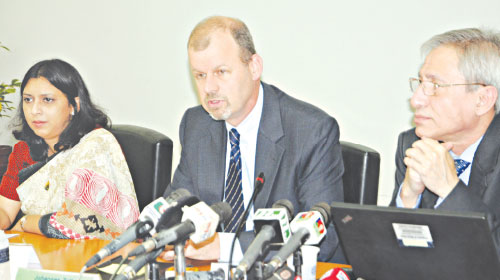 World Bank country director Johannes Zutt speaks at a briefing at the WB office in Dhaka on Wednesday. — New Age photo