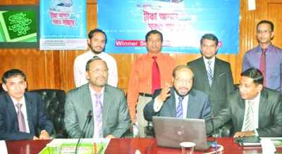 Shamim Iftakhar, Country Manager, Xpress Money, Mohammad Abdul Mannan, Managing Director, IBBL, conduct the draw of a campaign in Dhaka recently.